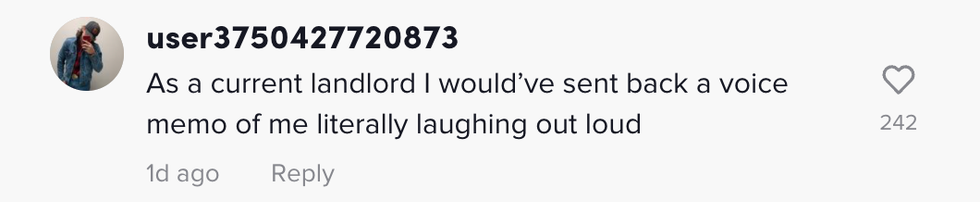 The landlord's disappointing response to the up close and personal selfie was a simple reply of: