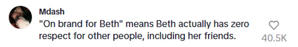But some pointed out that while this might be the case for some people, Abby said this was "on brand" for Beth.