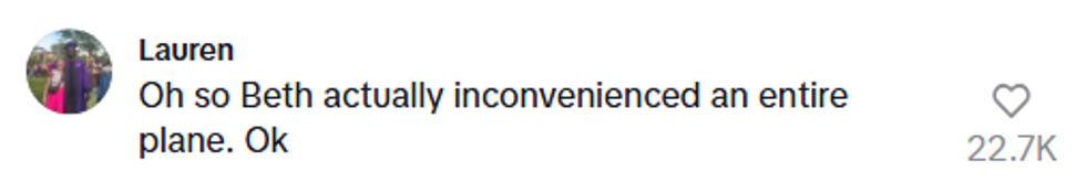 Others couldn't help but shake their heads, thinking about the inconvenience Beth caused to the crew and fellow passengers.