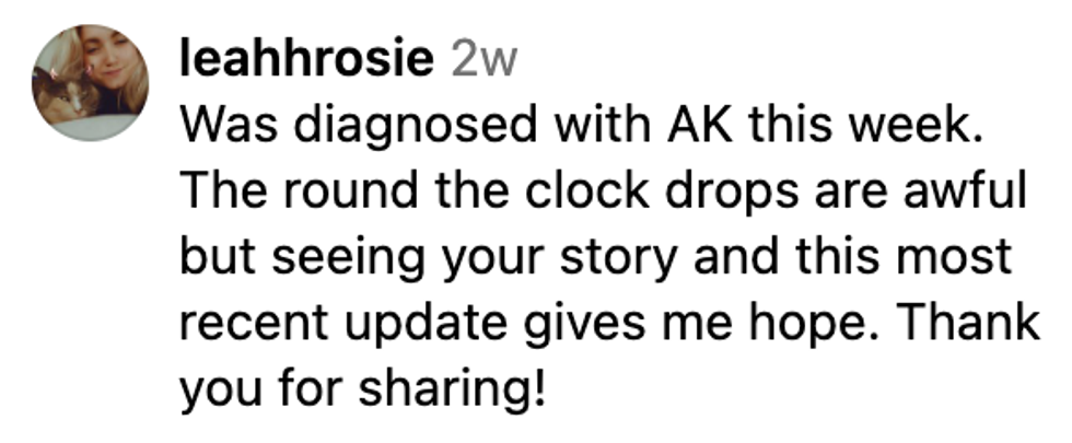 We're so happy she's doing well and that she's sharing information with others.