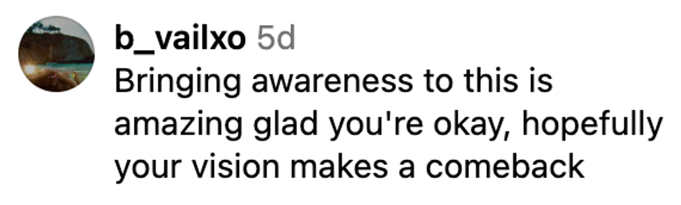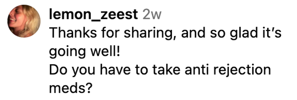 She did share some issues she was having with the transplant. For example, the pupil in the injured eye wasn't "contracting" with light, but she added that it's "no big deal."