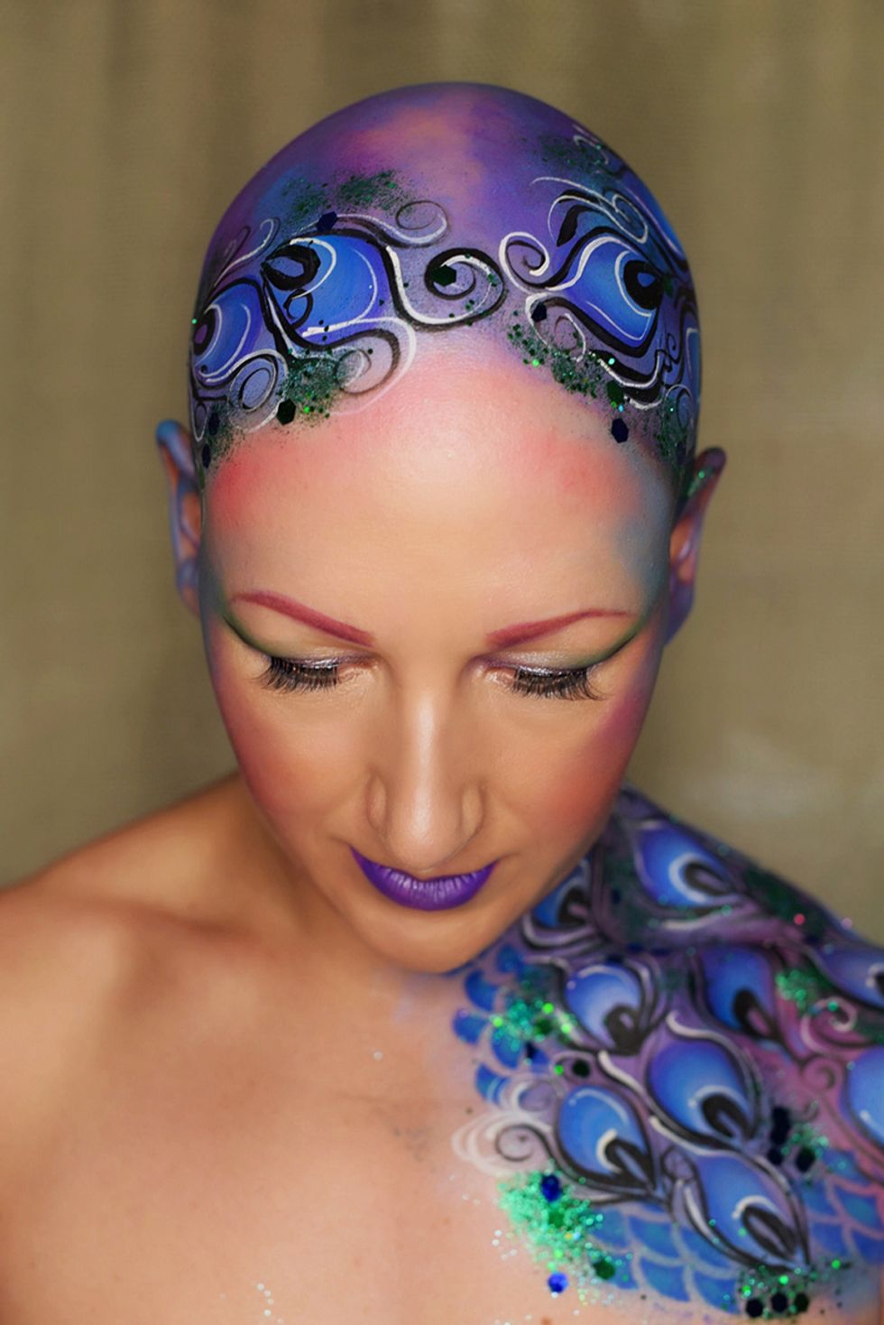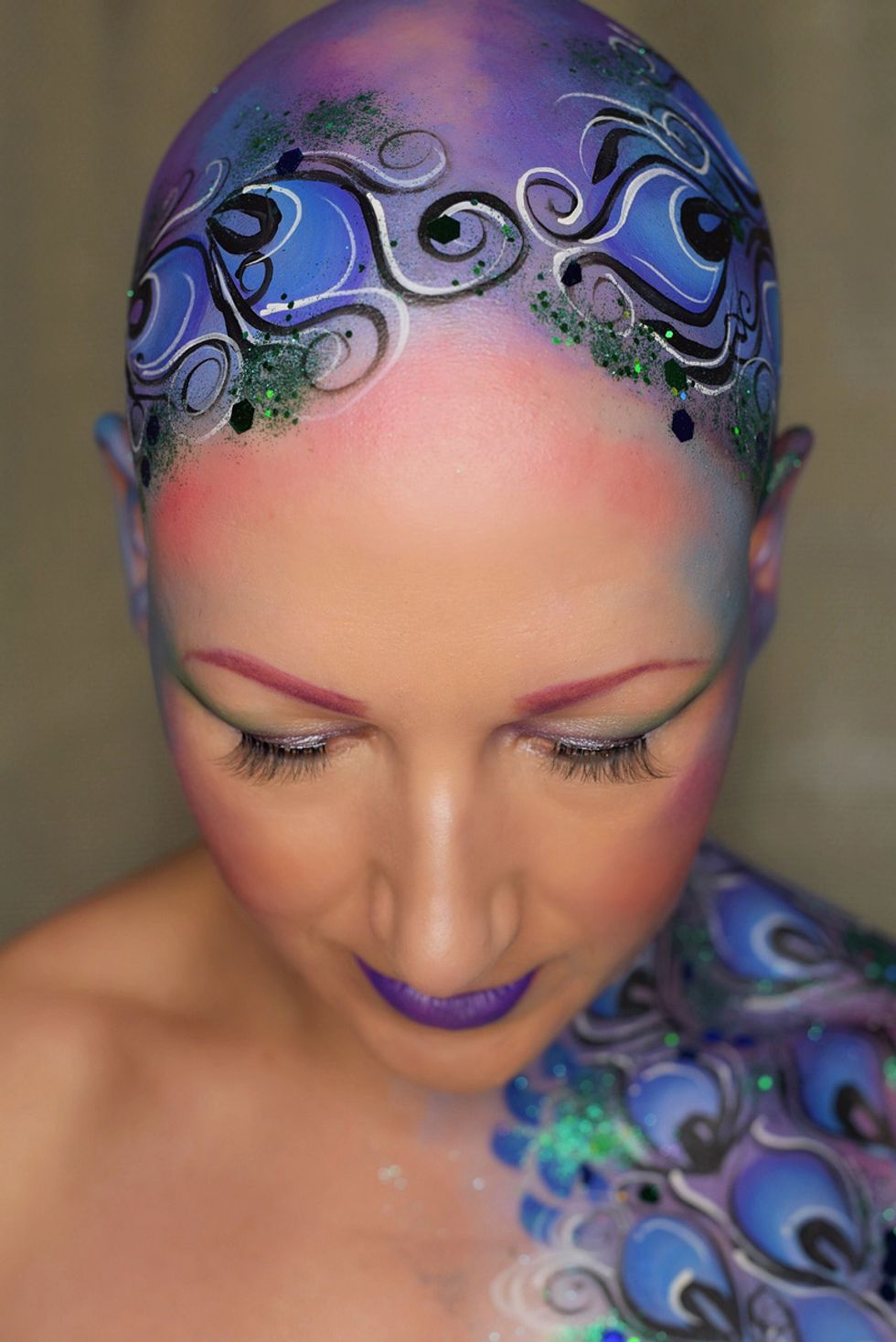 “I always saw my bald head as ugly. But finally, with the gorgeous body art, it is pretty and something I could feel happy and proud of.”