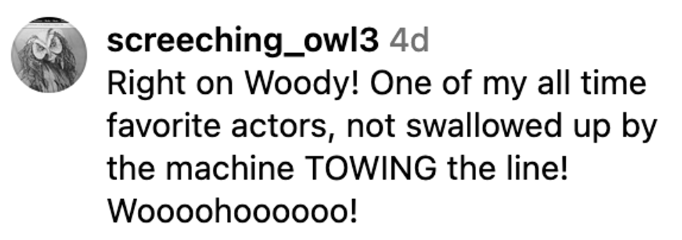 Some users expressed their approval of Harrelson's endorsement of the conspiracy theorist.