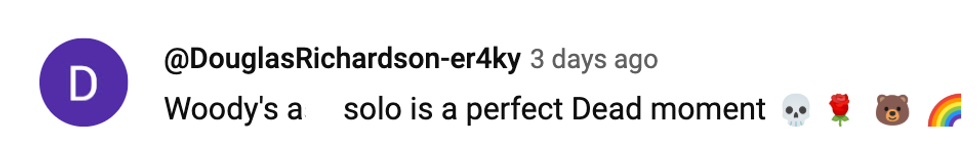 Just after sitting down, Harrelson noticed that The Grateful Dead's "Space" section, a moment during their concerts where the band would famously riff and improvise, sounded even more out of the box than usual.