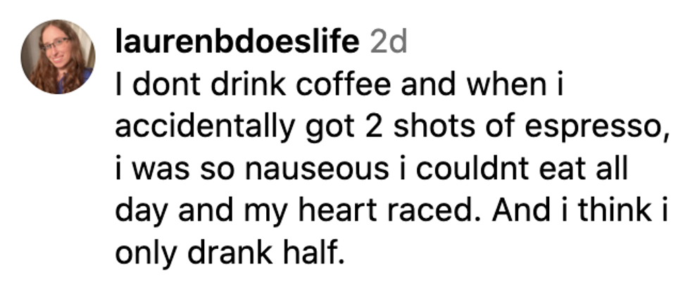 "Same. And she recently admitted she drank 2 beers a day as well with me so that's cool. It's a miracle that I'm a functional human."