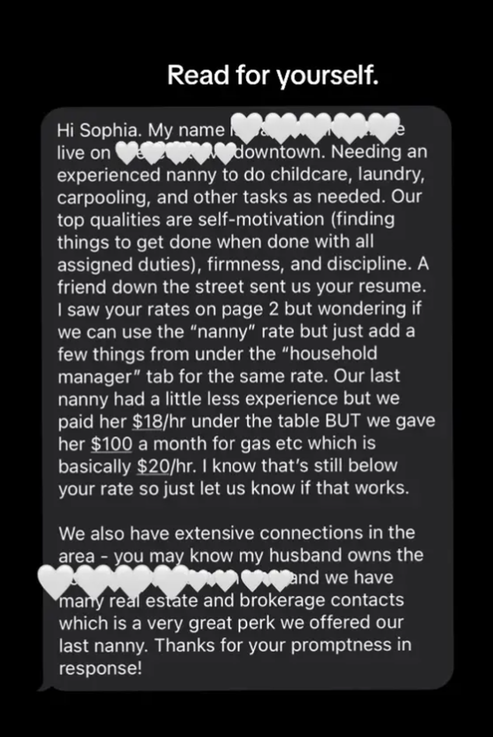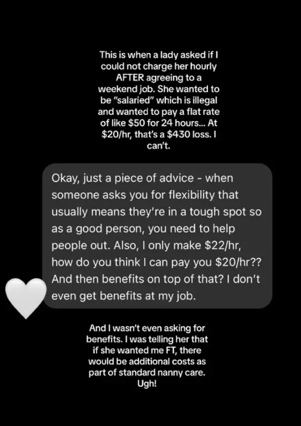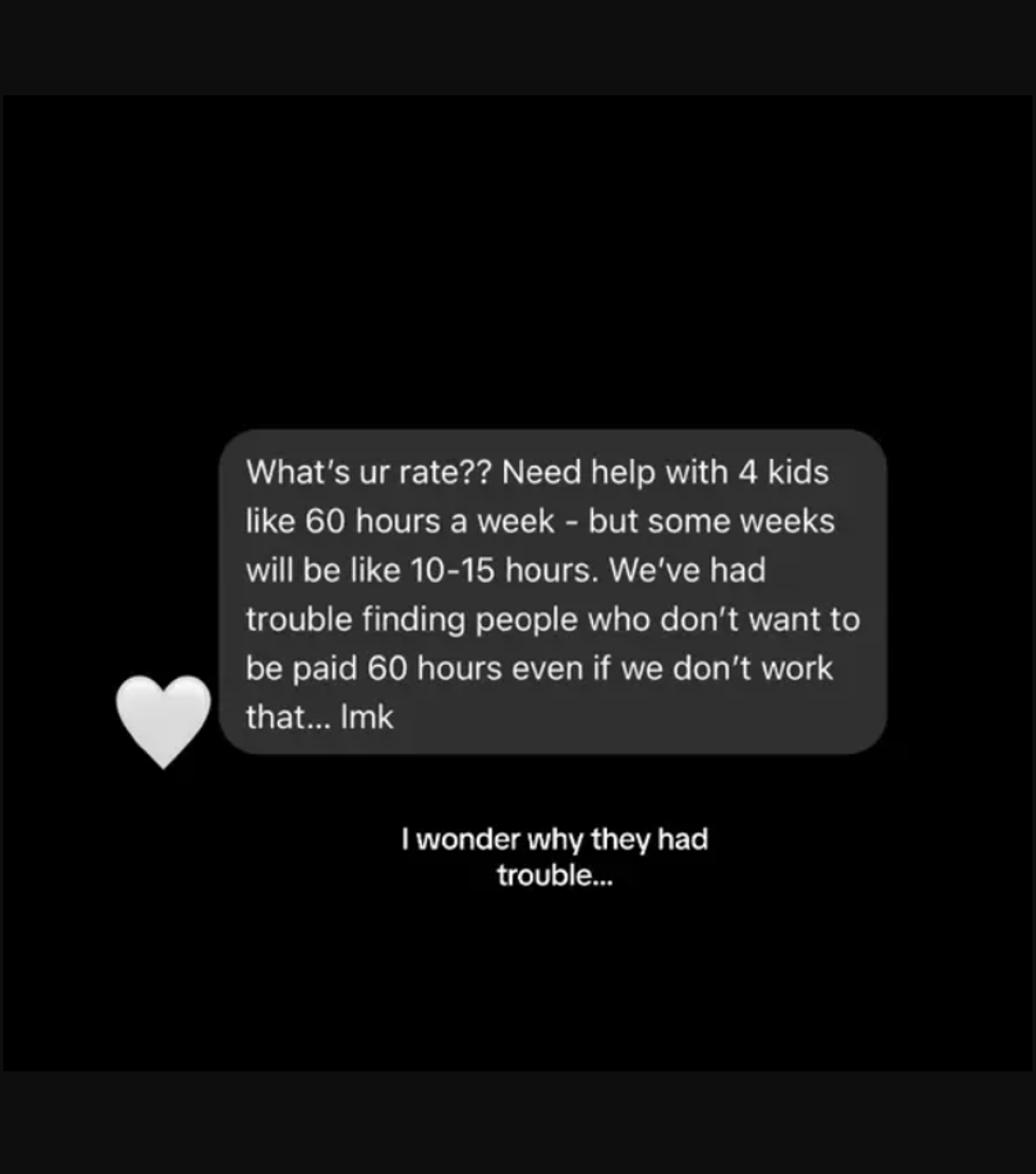But in some of these situations, the parents tried to negotiate astronomically low rates based on "previous nannies" they'd had, which, let's be honest, may or may not have been figments of their imagination.