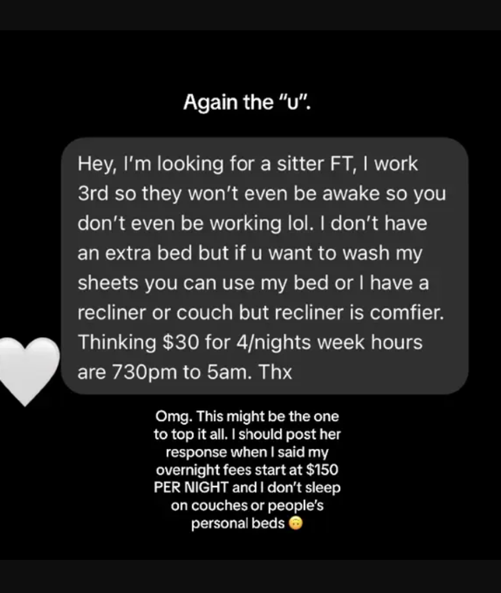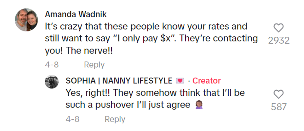 Fellow TikTokers, some being nannies and others past customers, were appalled by the audacity of these potential customers.