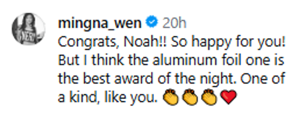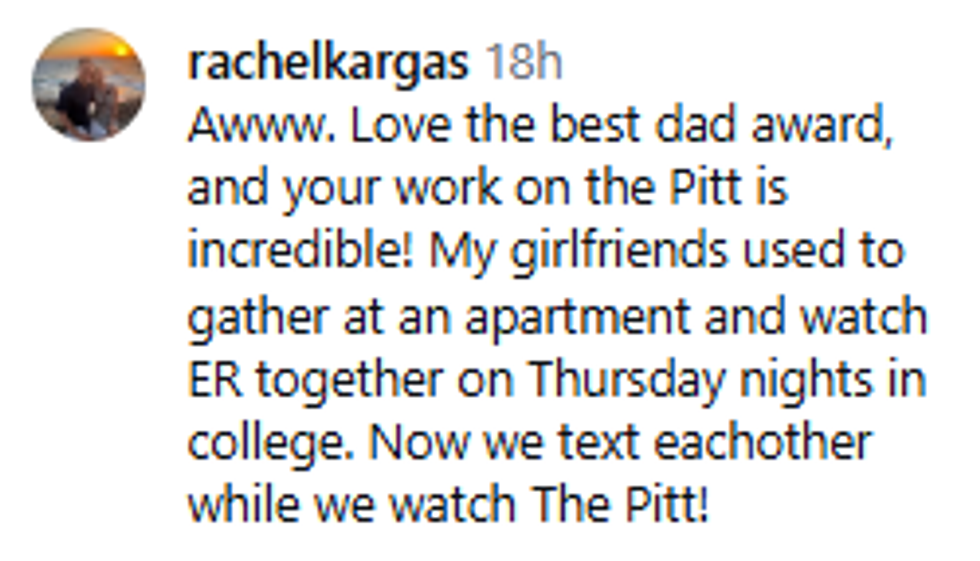 In a touching Instagram post, Wyle shared a side-by-side photo of his Golden Globe award with an aluminum foil award that read, "Noah Wyle: Best Dad."