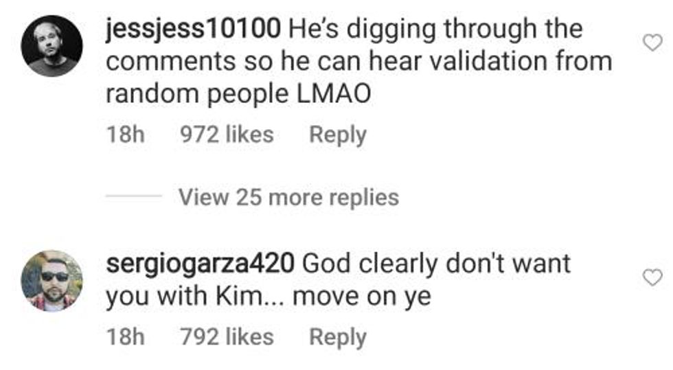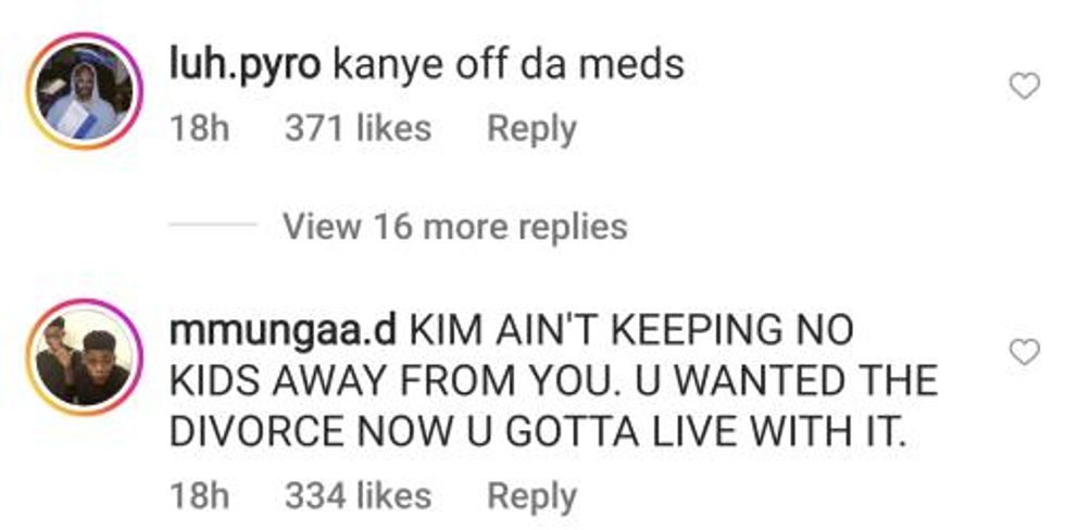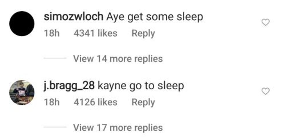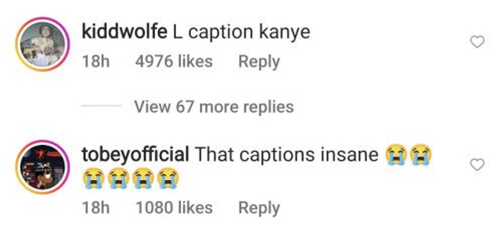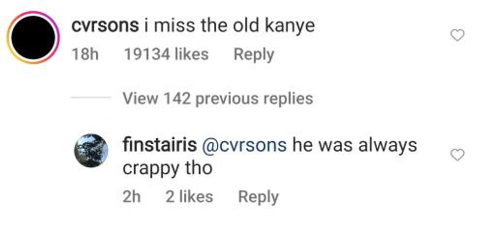 Posting a screenshot of a fan's comment, Ye captioned it: