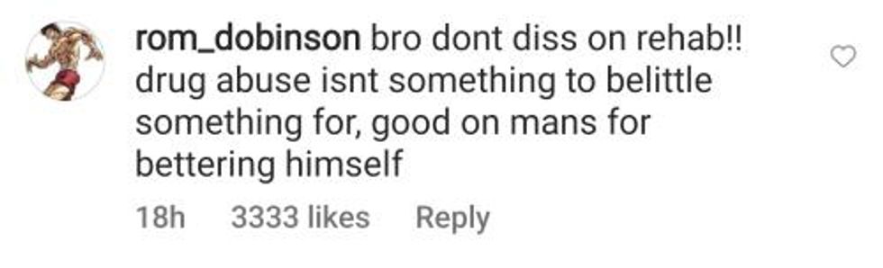 His comment about Davidson on Instagram speaks to a fear the comedian will get her addicted to drugs.