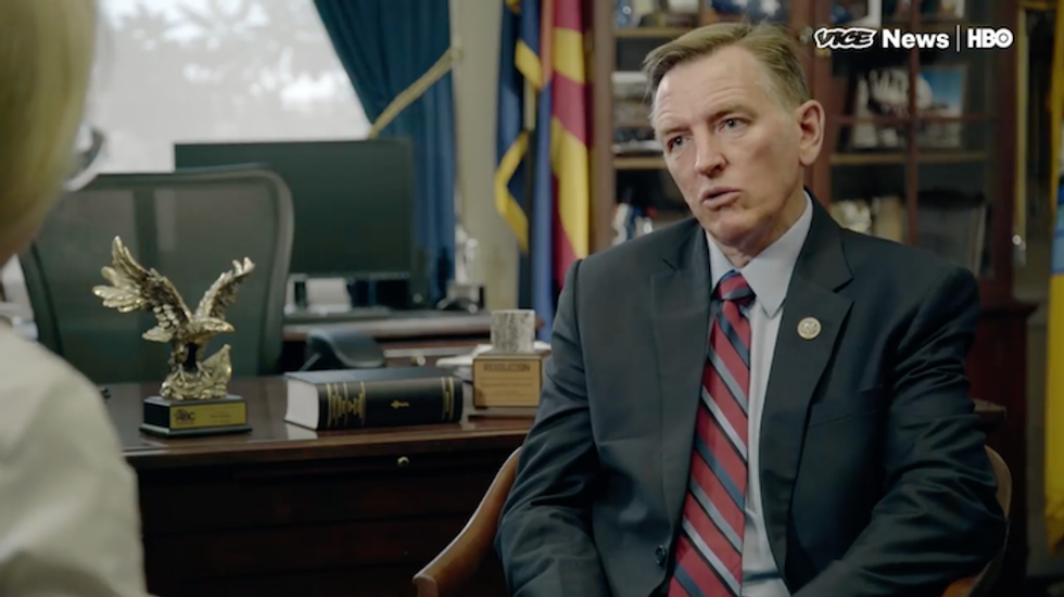 The Arizona Congressman made baseless claims during an interview with VICE News, in which he said that the entire plot was a "false flag" operation created by the Left. Gosar also accused billionaire George Soros, a Hungarian-born Jew who survived Nazi occupation, of funding the white nationalist rally.