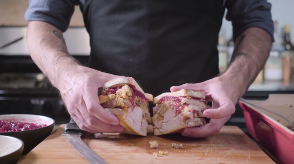 YouTuber "Binging with Babish" (AKA Andrew Rea) demonstrated for us on how to bring Ross's beloved creation to life. "I couldn't google 'thanksgiving sandwiches in television and film' without getting about a billion Ross Geller references," he prefaced on his YouTube clip.