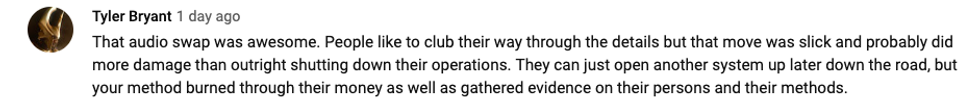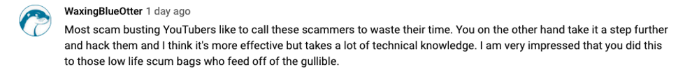 He also manages to intercept the scammers' robocalls, replacing their calls with a message that these calls are, in fact, a scam.