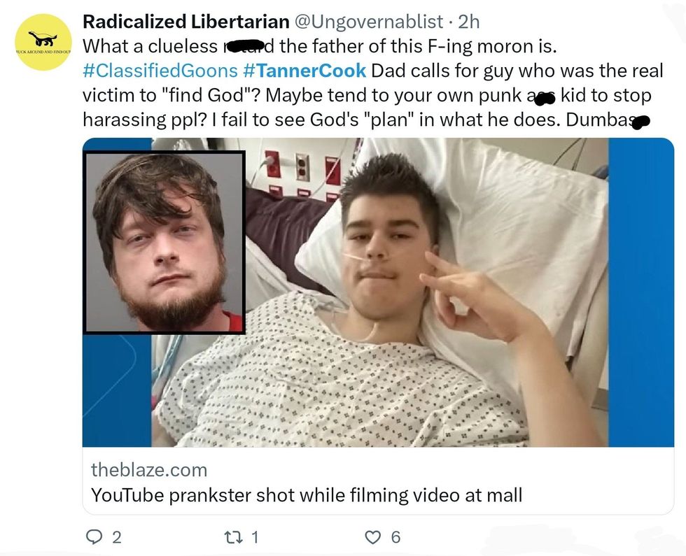 \u201c@lporiginalg "Despite what led up to the gunfire, Tanner Cook\u2019s father said the shooting was shocking and unnecessary.\n\n\u201cThey were making a video at the mall and trying to have fun with people and this guy wasn't having fun,\u201d added Jeramy Cook."\u201d— I,Hypocrite (@I,Hypocrite) 1680653309