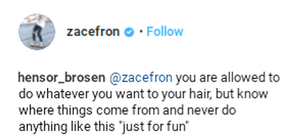 His caption, "Just for fun 🤘," signals Efron wasn't fully aware of the intense scrutiny his post would soon be receiving. Unless his idea of fun is being at the center of an online debate.